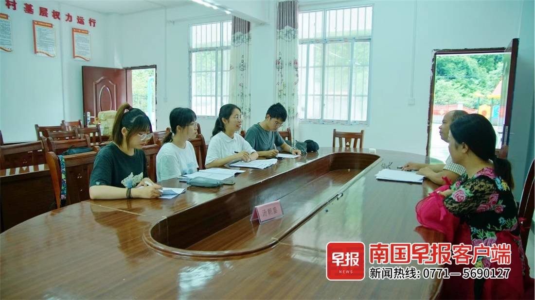 ▲2021年暑假,符其嫻(左三)跟團隊同學在樂業縣豐洞村走訪。受訪者供圖