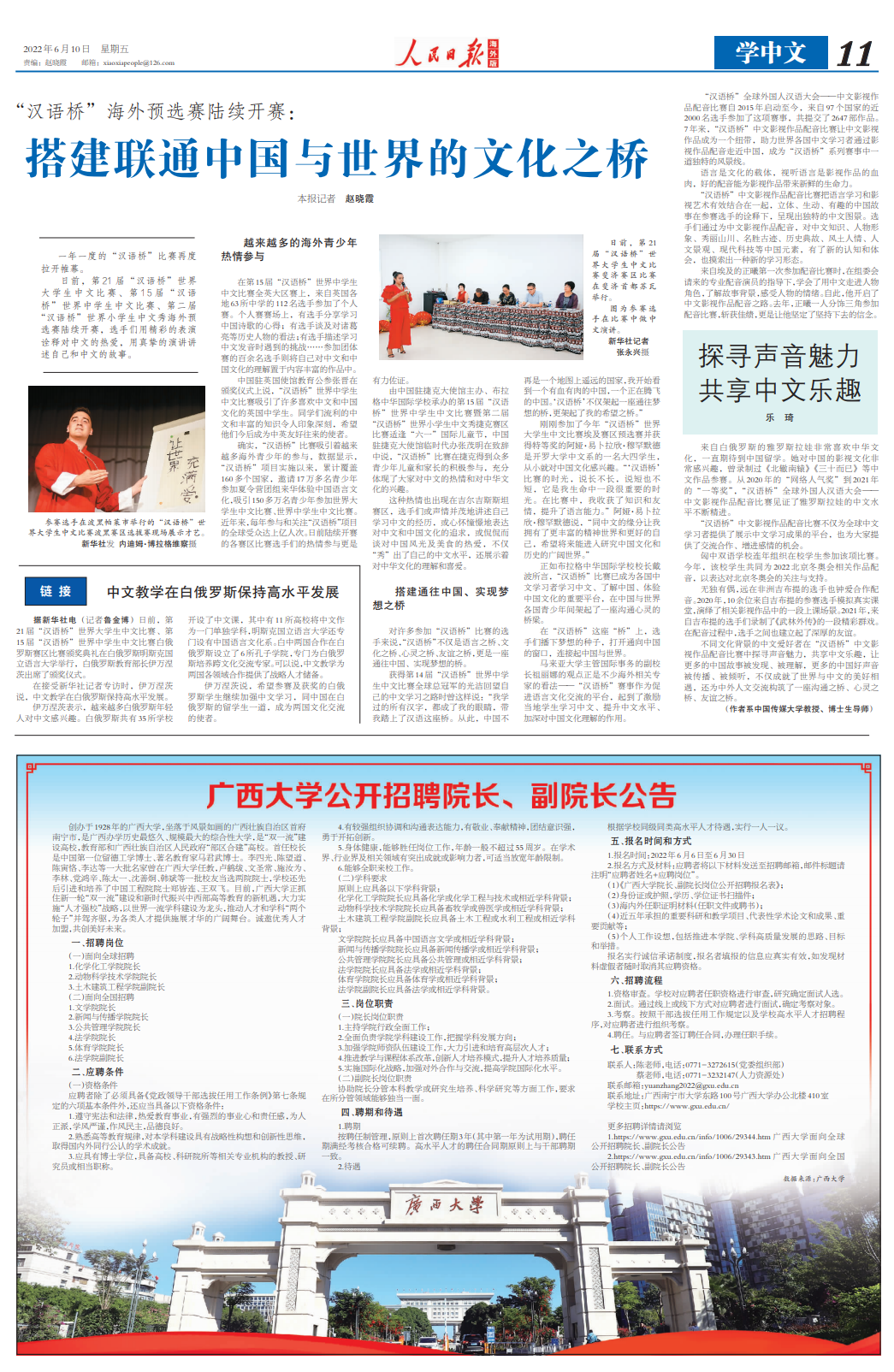 創辦于1928年的廣西大學,坐落于風景如畫的廣西壯族自治區首府南寧市,是廣西辦學歷史最悠久、規模最大的綜合性大學,是“雙一流”建設高校,教育部和廣西壯族自治區人民政府“部區合建”高校。首任校長是中國第一位留德工學博士、著名教育家馬君武博士。李四光、陳望道、陳寅恪、李達等一大批名家曾在廣西大學任教,盧鶴紱、文圣常、施汝為、李林、黨鴻辛、陳太一、沈善炯、韓斌等一批校友當選兩院院士,學校還先后引進和培養了中國工程院院士鄭皆連、王雙飛。目前,廣西大學正抓住新一輪“雙一流”建設和新時代振興中西部高等教育的新機遇,大力實施“人才強校”戰略,以世界一流學科建設為龍頭,推動人才和學科“兩個輪子”并駕齊驅,為各類人才提供施展才華的廣闊舞臺。誠邀優秀人才加盟,共創美好未來。