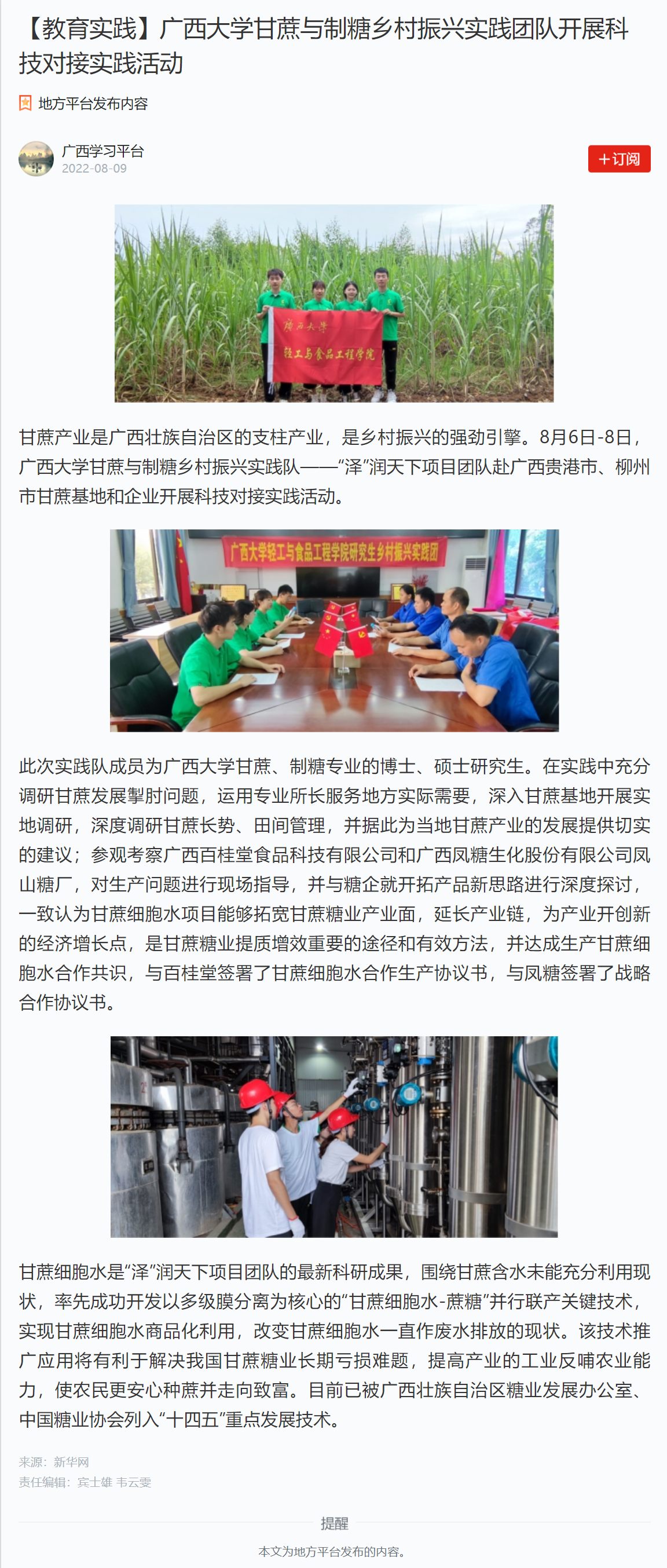 【教育實踐】廣西大學甘蔗與制糖鄉村振興實踐團隊開展科技對接實踐活動