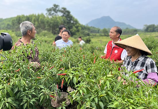 唐小付(右二)到周鹿鎮武平村指導指天椒生產。聶圣賢攝