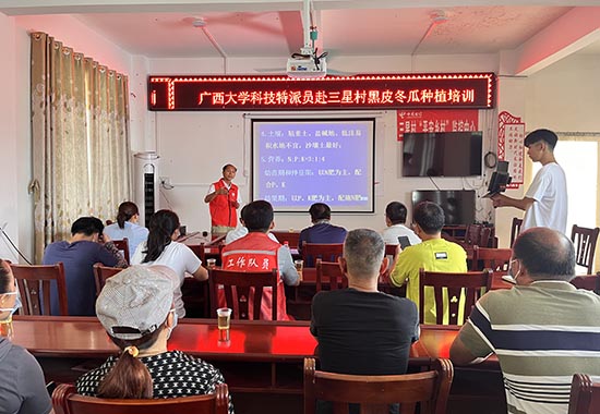 唐小付到周鹿鎮三星村開展黑皮冬瓜種植技術培訓。陳宏昊攝