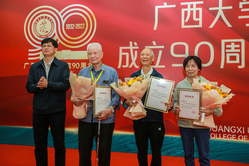 廣西大學領導為老教師頒發榮譽證書。廣西大學農學院供圖