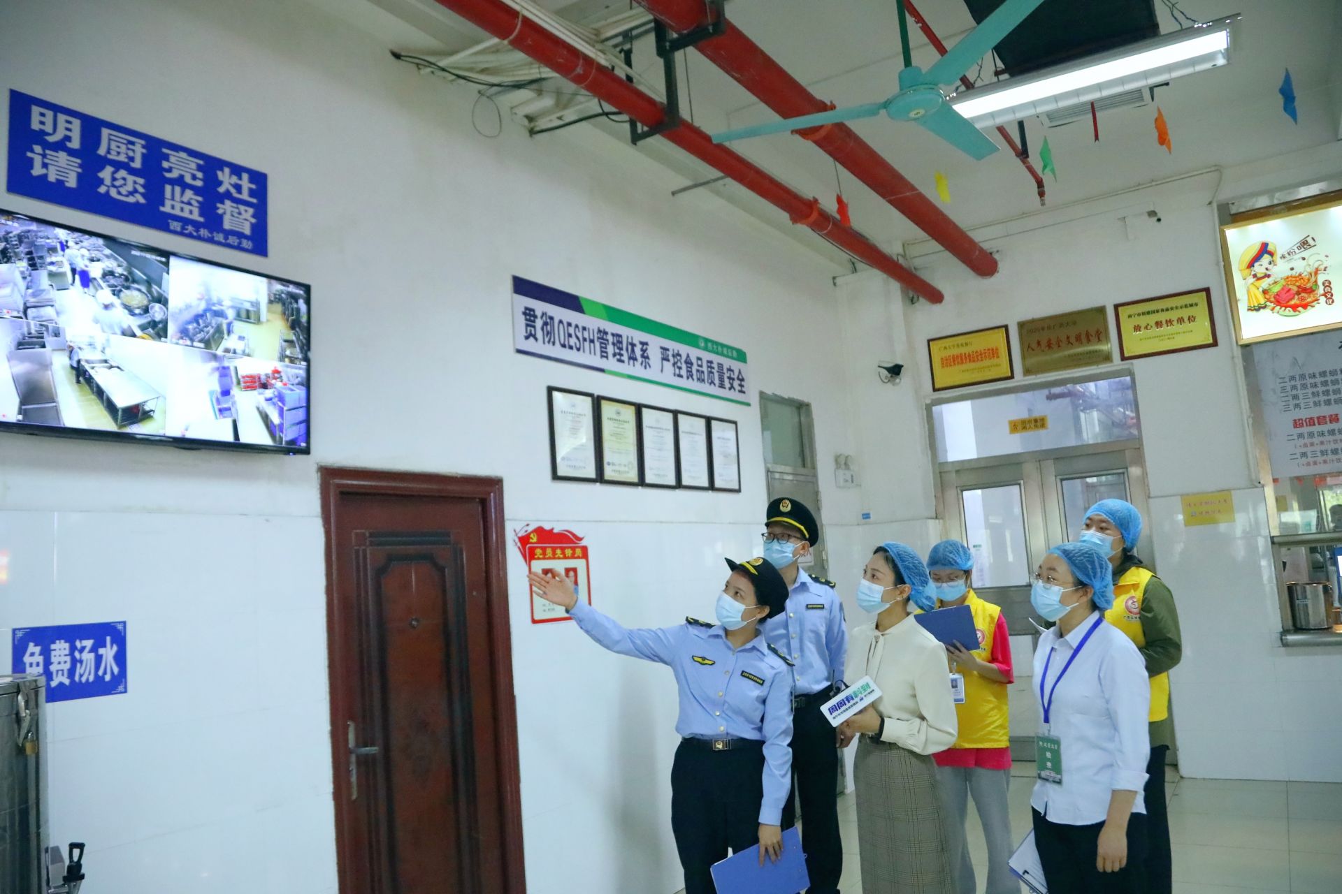 廣西大學(xué)9個(gè)食堂共安裝了500多個(gè)“明廚亮灶”高清攝像頭,24小時(shí)對食堂的所有場所進(jìn)行實(shí)時(shí)監(jiān)控,將食堂的生產(chǎn)加工過程公開向?qū)W生展示,主動接受學(xué)生的實(shí)時(shí)監(jiān)督,為師生“舌尖上的安全”筑牢防線。