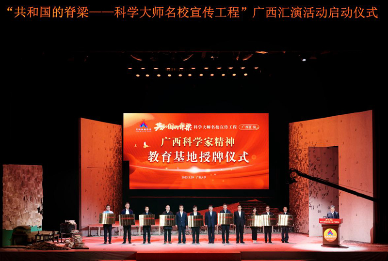 3月29日,由中國科協(xié)、教育部、共青團(tuán)中央、中國科學(xué)院、中國工程院主辦,廣西壯族自治區(qū)科協(xié)、自治區(qū)教育廳、共青團(tuán)廣西區(qū)委、廣西科學(xué)院共同承辦的“共和國的脊梁——科學(xué)大師名校宣傳工程”廣西匯演活動在廣西大學(xué)啟動。中國科協(xié)黨組成員、書記處書記王進(jìn)展,廣西壯族自治區(qū)副主席李常官,自治區(qū)政協(xié)副主席、廣西大學(xué)黨委書記王乃學(xué)等出席活動并致辭。廣西壯族自治區(qū)科協(xié)黨組書記、副主席納翔主持啟動儀式。