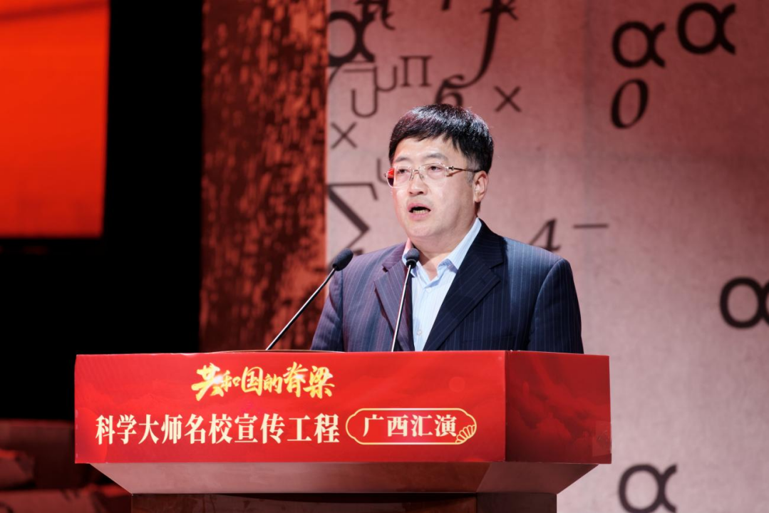 王乃學在致歡迎辭時表示,“共和國的脊梁——科學大師名校宣傳工程”來到廣西,首站走進廣西大學,是對廣西大學的信任和厚愛,也是對廣西大學科研工作的極大鼓勵。希望學校科技工作者大力弘揚科學家精神,為把廣西大學建設成廣西的人才高地、科技創新中心、決策智庫、先進生產力引擎貢獻智慧和力量。希望同學們進一步加深對科學家精神的認識與理解,樹立愛國奉獻、勇攀高峰的理想信念,努力成為堪當民族復興重任的時代新人。