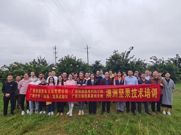 廣西扶綏堅果科技小院培訓推廣薛氏滴干技術和薛氏修剪技術。廣西大學供圖