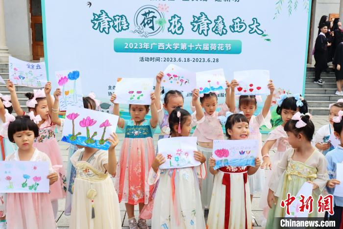 6月18日,廣西大學第十六屆荷花節開幕,學子身著漢服參加荷花主題走秀等活動。