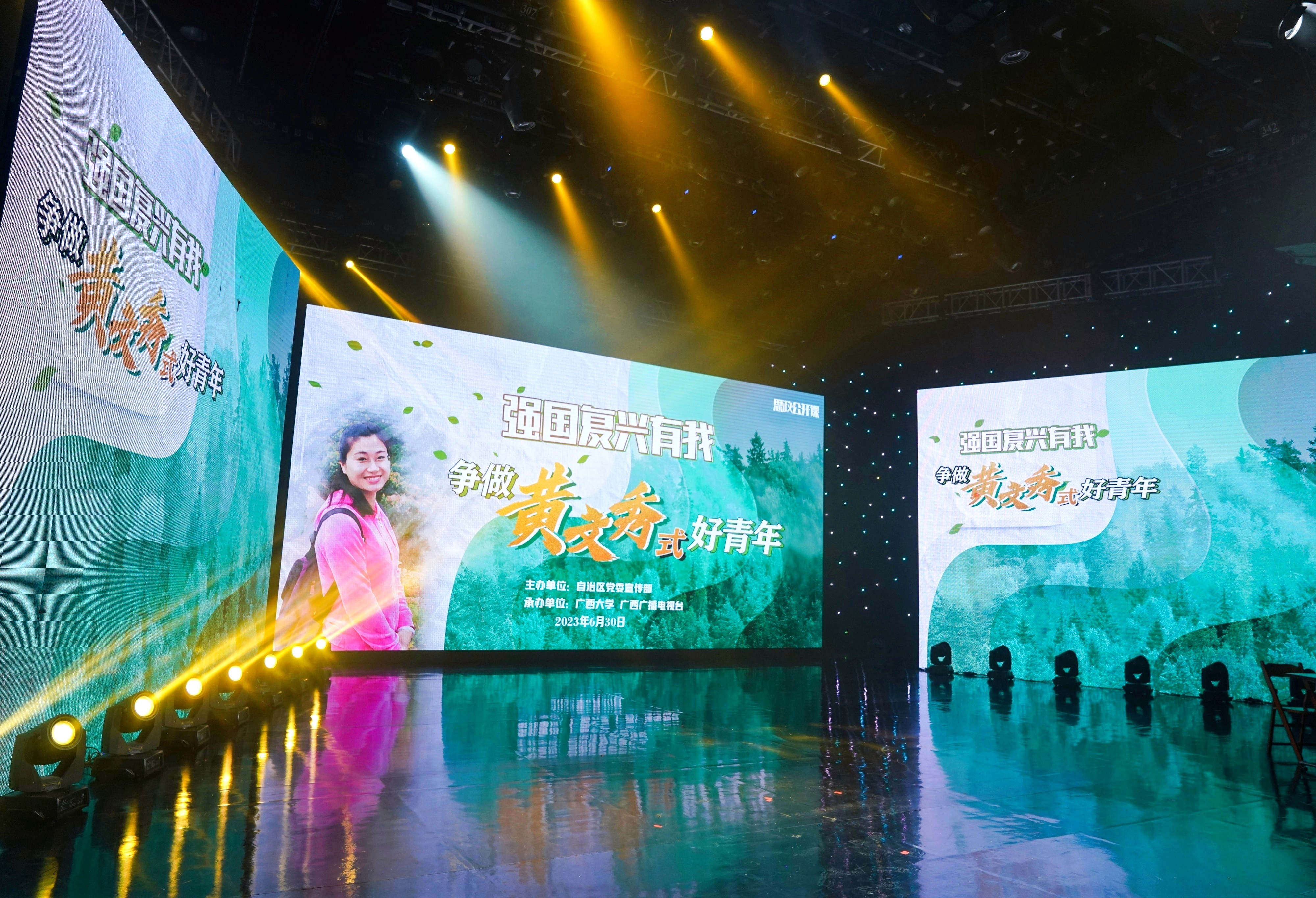 6月30日下午,“強國復興有我——爭做‘黃文秀式好青年’”2023年思政公開課高校專場在廣西南寧舉行,廣西大學200余名師生參加?;顒佑蓮V西壯族自治區黨委宣傳部主辦,采用“雙師授課+情景演繹”的模式進行授課,通過故事串講、情景演繹、思政授課等環節,回顧黃文秀感人故事,引領廣大青年樹立堅定理想信念、厚植家國情懷、加強品德修養、培養奮斗精神。