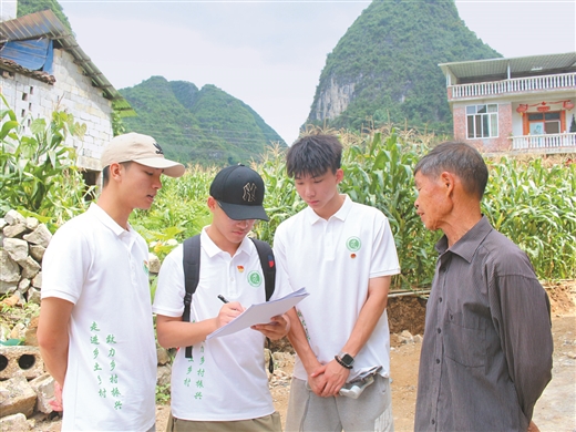 7月5-7日,廣西大學(xué)農(nóng)學(xué)院博士團(tuán)實(shí)踐隊(duì)赴馬山縣開展以“厚植愛農(nóng)情,鑄就強(qiáng)農(nóng)夢(mèng)”為主題的暑期社會(huì)實(shí)踐。圖為實(shí)踐隊(duì)隊(duì)員對(duì)當(dāng)?shù)剞r(nóng)戶進(jìn)行問卷調(diào)查。(廣西大學(xué)農(nóng)學(xué)院供圖)
