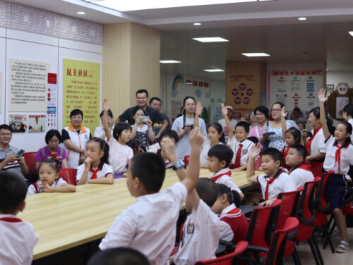 少先隊員們對廣西大學校史場館虛擬仿真系統表現出極大的熱情,認真傾聽實踐團成員的講解,積極舉手搶答相關問題。實踐團的成員周子超感觸很深,他表示,“少先隊員和前輩們使用我們的制作的系統,我感受到一種傳承,我們的系統作為紐帶傳遞了前輩們的精神和信念。我們把這種代代相傳的紅色精神與我們的系統結合,以一種創新的方式把這種精神繼續傳遞下去,更好地傳承革命精神,讓革命精神蕩滌少先隊員們的精神世界。”
