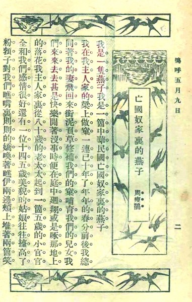 周瘦鵑創(chuàng)作的短篇小說《亡國奴家里的燕子》