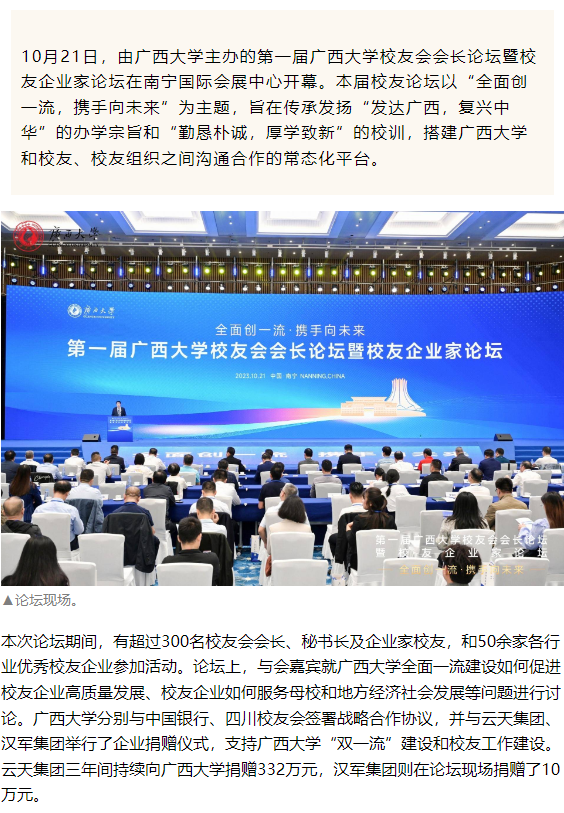 首屆廣西大學校友會會長論壇暨校友企業家論壇在南寧舉行