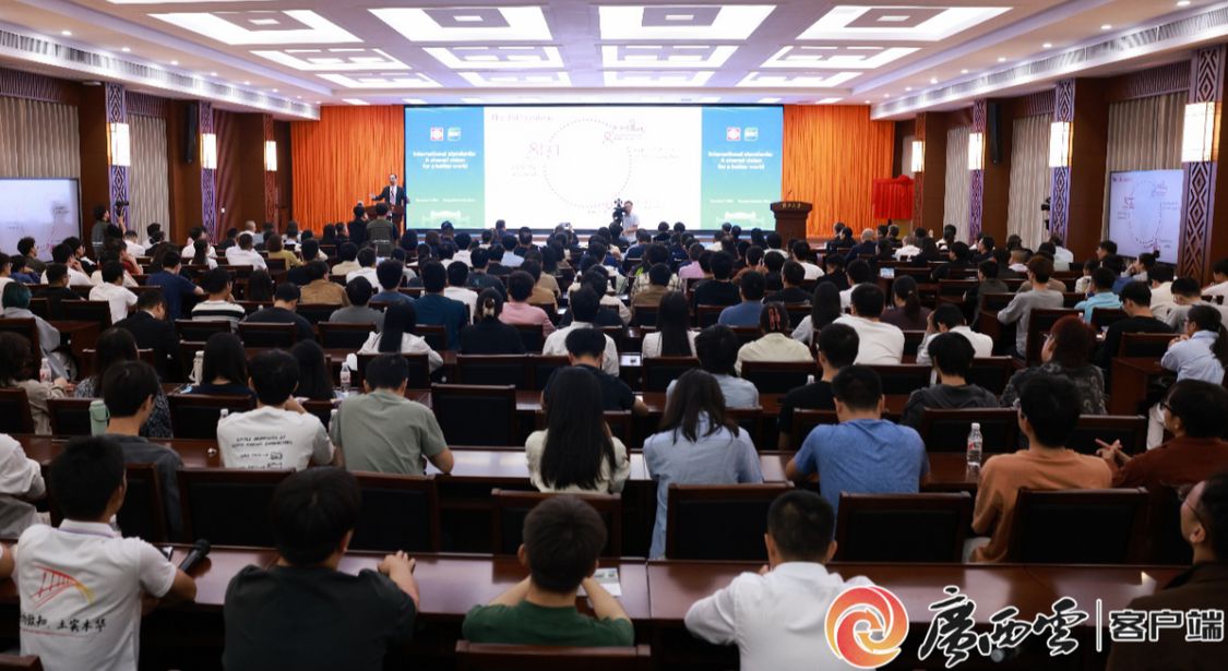 揭牌儀式前,穆希卡為廣西大學等高校的200余名師生代表作題為“國際標準:為了一個更美好的世界的共同愿景”的主旨演講,并與活動現場師生代表就如何參與ISO國際標準制定、國際標準化人才培養、標準化在減少碳排放方面的貢獻等話題進行交流互動。