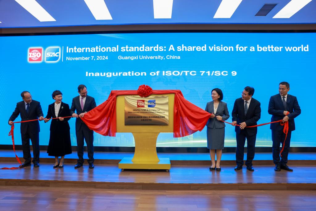 11月7日,國際標(biāo)準(zhǔn)化組織(ISO)秘書長塞爾吉奧·穆希卡訪問廣西大學(xué),出席由廣西市場監(jiān)管局和廣西大學(xué)聯(lián)合主辦的“美好世界的共同愿景”國際標(biāo)準(zhǔn)化主題活動,為鋼-混凝土組合結(jié)構(gòu)和混合結(jié)構(gòu)分委會(ISO/TC 71/SC 9)秘書處揭牌并做主旨演講。