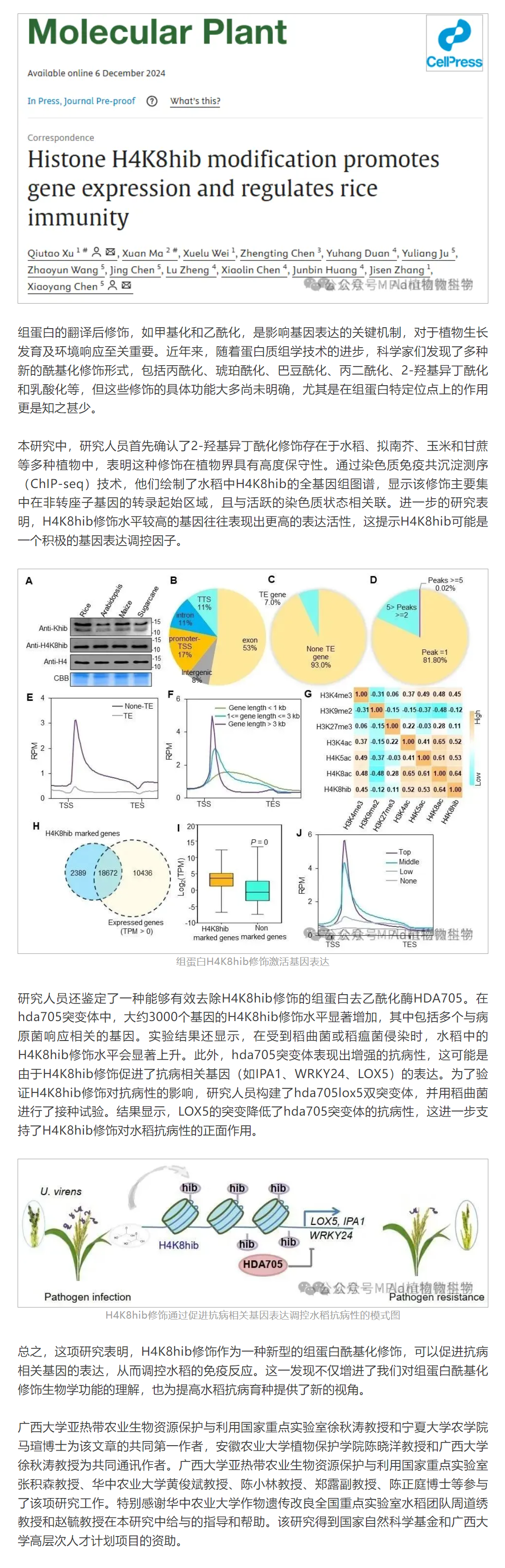 廣西大學教授以第一和通訊作者身份在植物學頂級期刊發表水稻抗病性調控機制方面的研究成果
