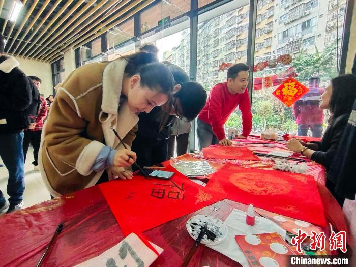 圖為留學生在書寫福字。中新網記者 黃艷梅 攝
