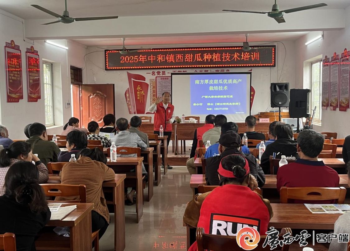 3月4日上午,廣西鄉村科技特派員、廣西大學農學院副教授唐小付受邀來到邕寧區中和鎮,深入田間地頭,為50余名基層農技骨干、種植戶及脫貧戶送上“科技及時雨”,以技術培訓點燃春耕生產“"新引擎”。