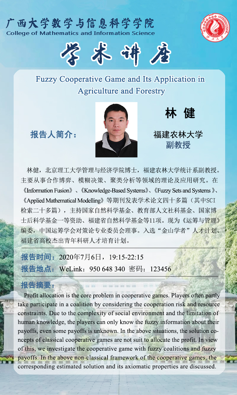 數信學院學術報告:Fuzzy Cooperative Game and Its Application in Agriculture and Forestry