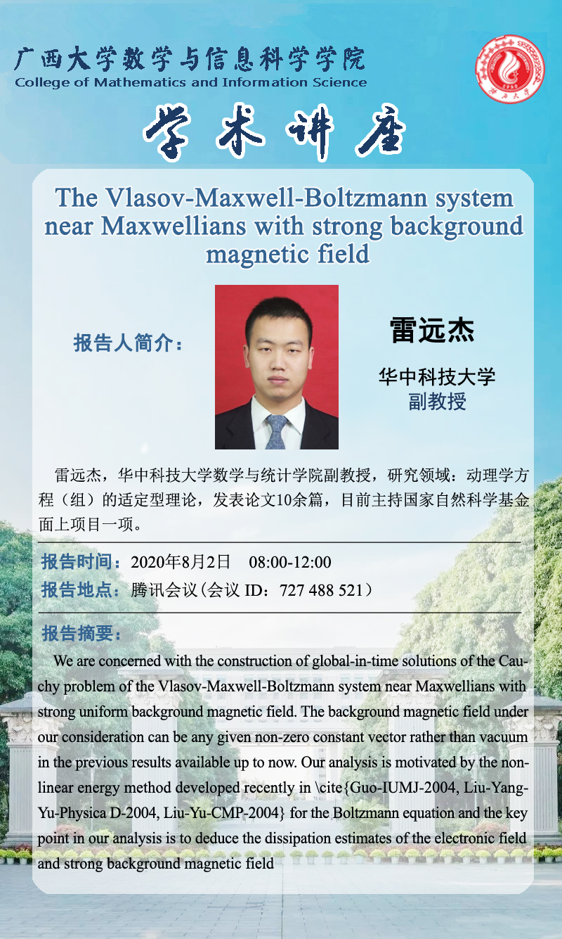 上一條:數(shù)信學(xué)院學(xué)術(shù)報(bào)告:Global strong solutions to the Cauchy problem for planar non-resistive magnetohydrodynamic equations with large initial data