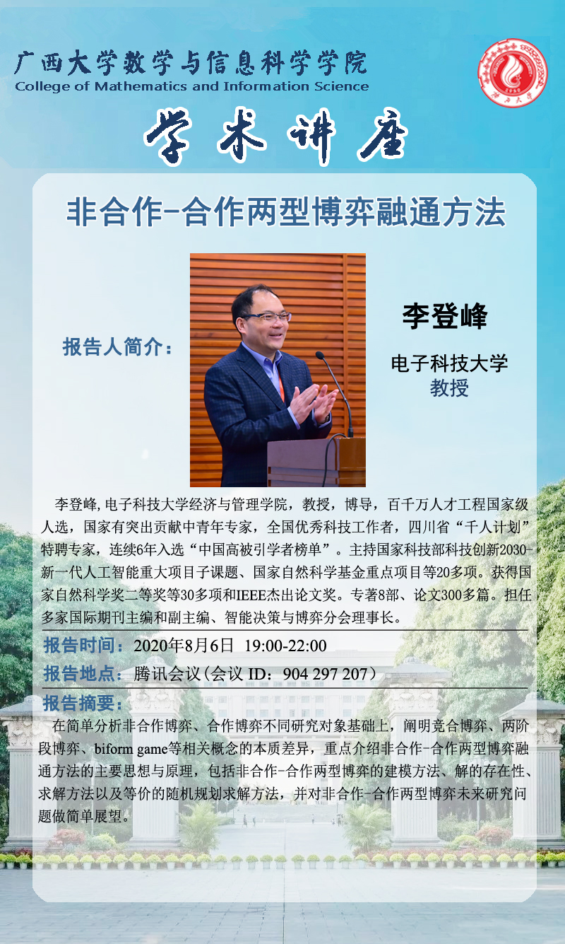 數信學院學術報告:非合作-合作兩型博弈融通方法