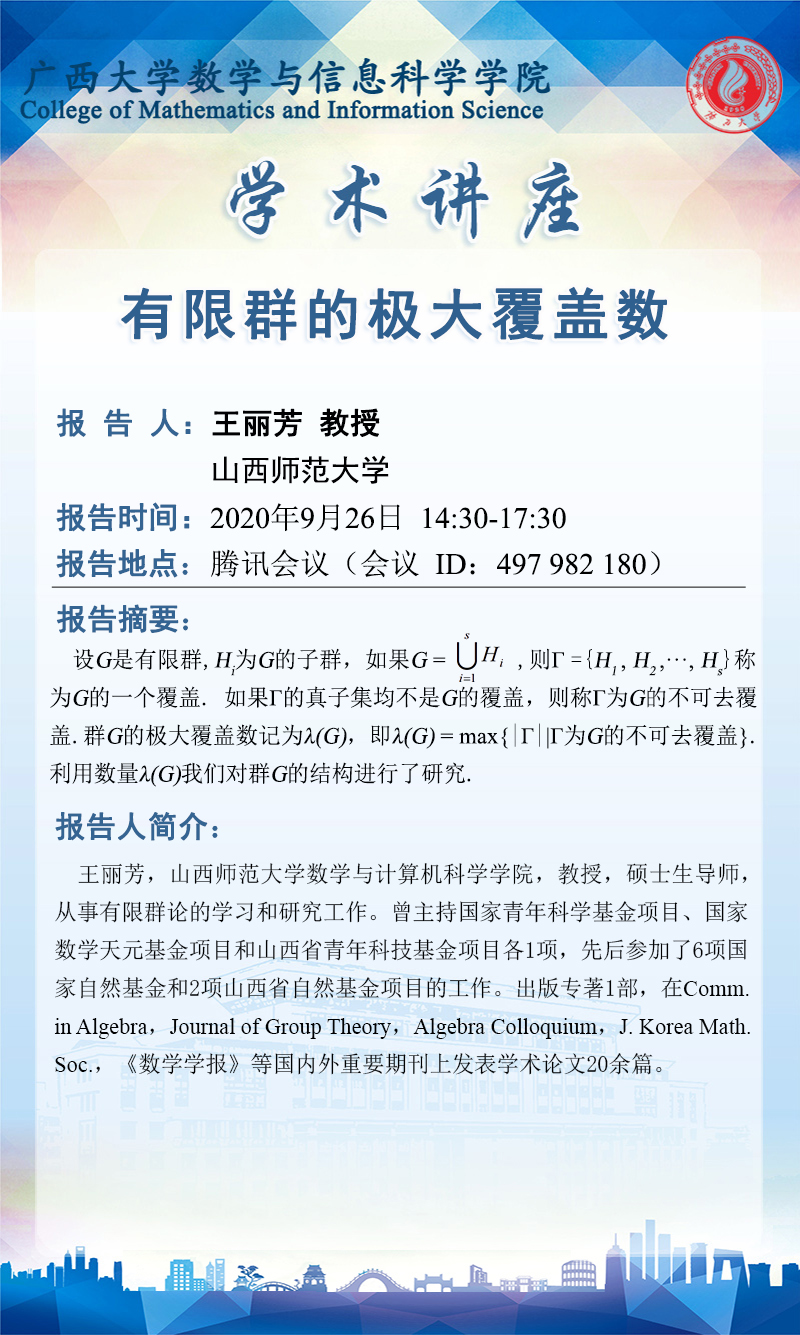 數學與信息科學學院學術講座:有限群的極大覆蓋數