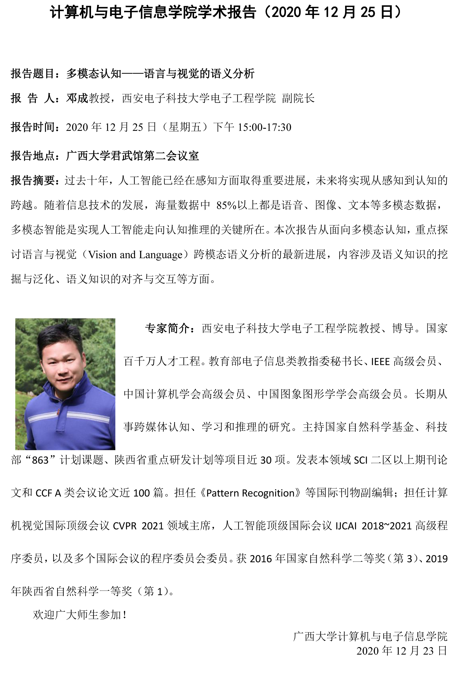 下一條:計算機與電子信息學院學術報告:礪劍圖強,勇于創新--從當研究生到指導研究生談幾點體會