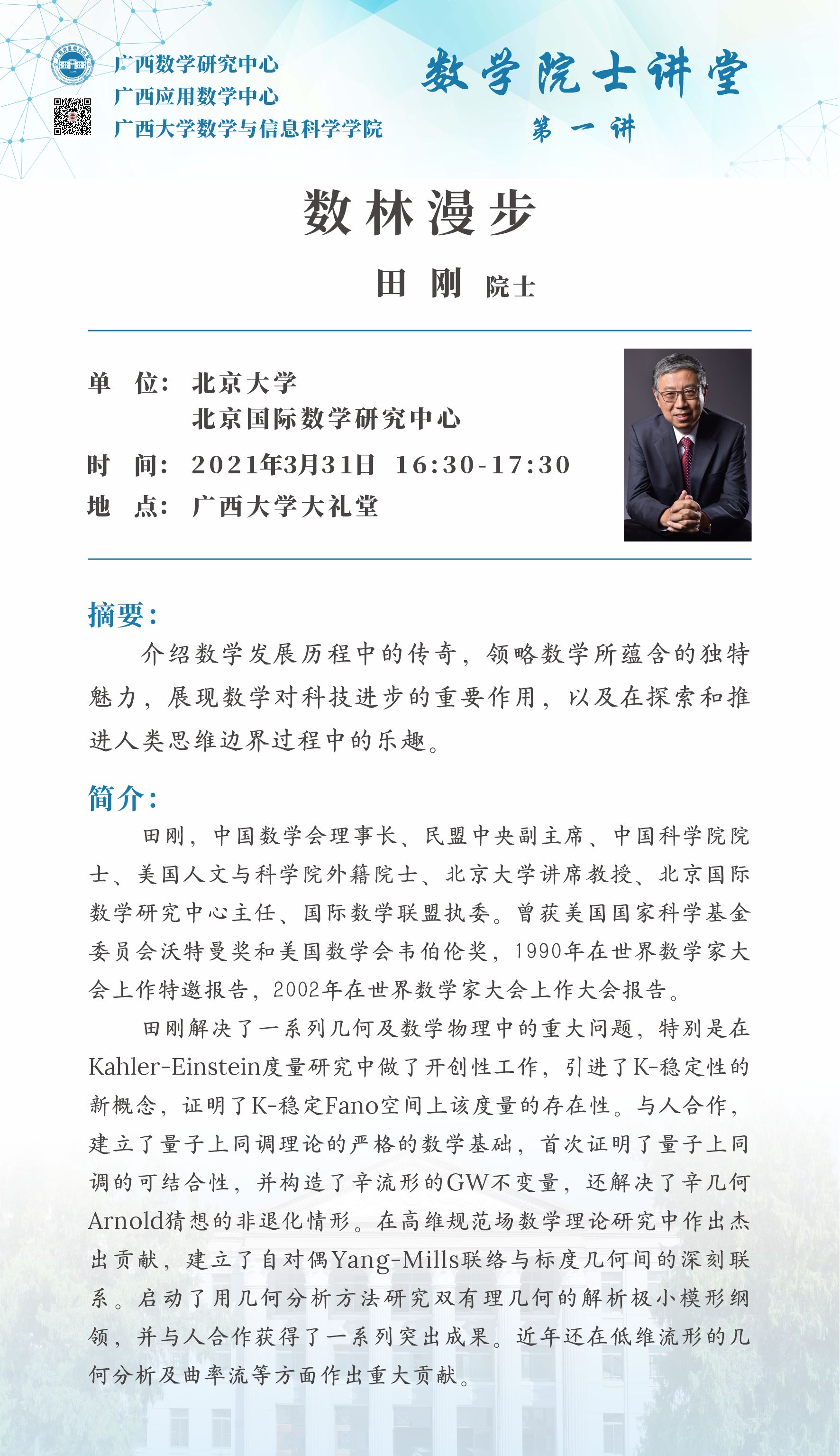 主講人 田剛 院士 地址 廣西大學大禮堂