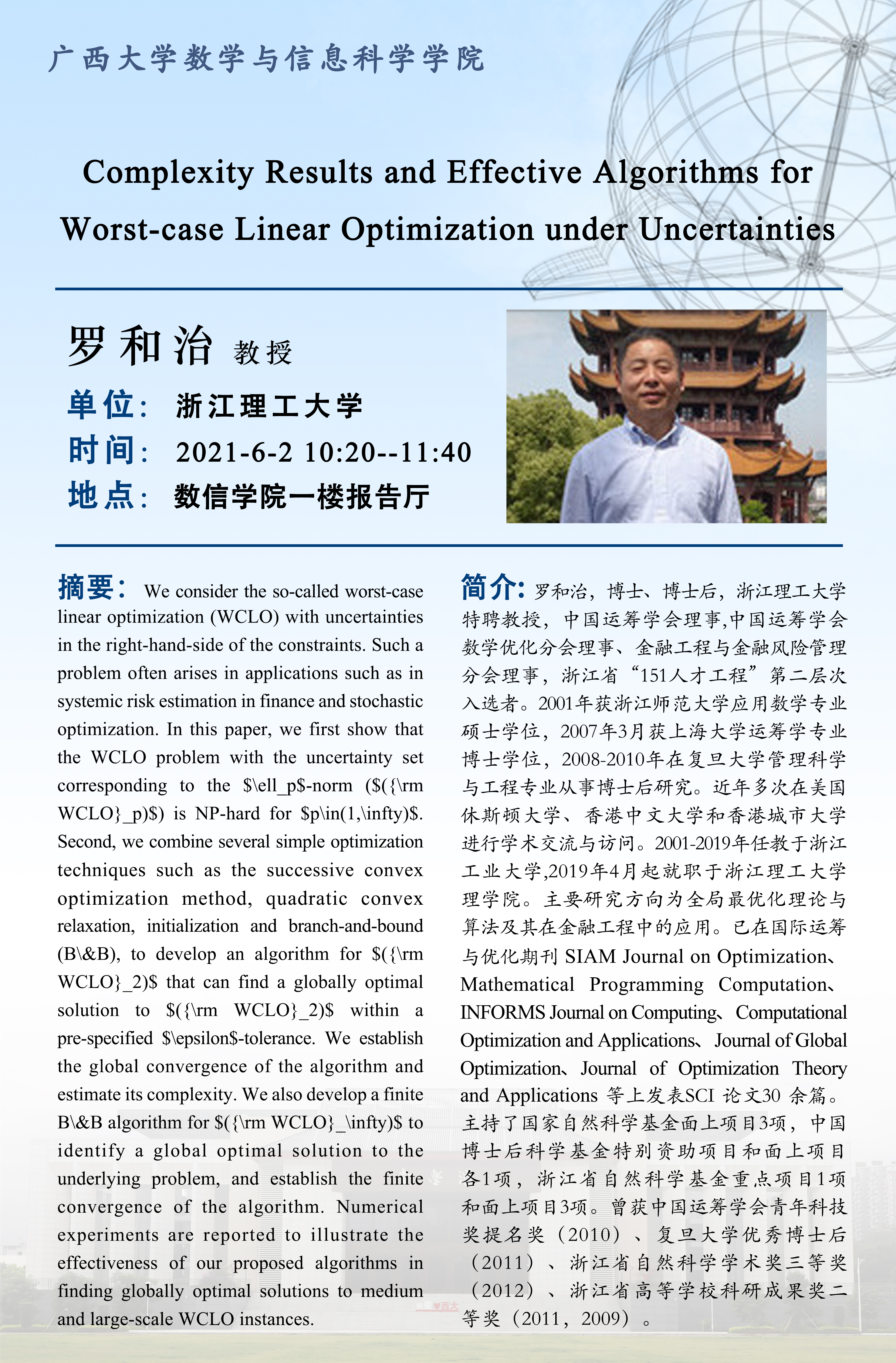 上一條:數(shù)學(xué)與信息科學(xué)學(xué)院學(xué)術(shù)報(bào)告:On the 3D relativistic Vlasov-Maxwell with large Maxwell field