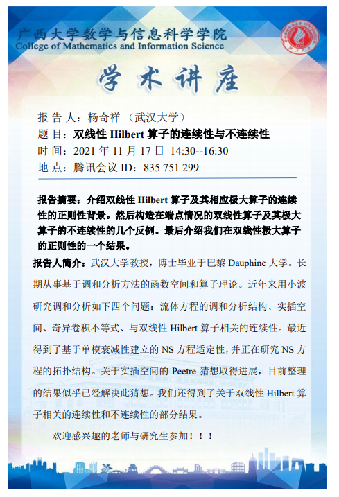 數信學院學術報告:雙線性Hilbert算子的連續性與不連續性