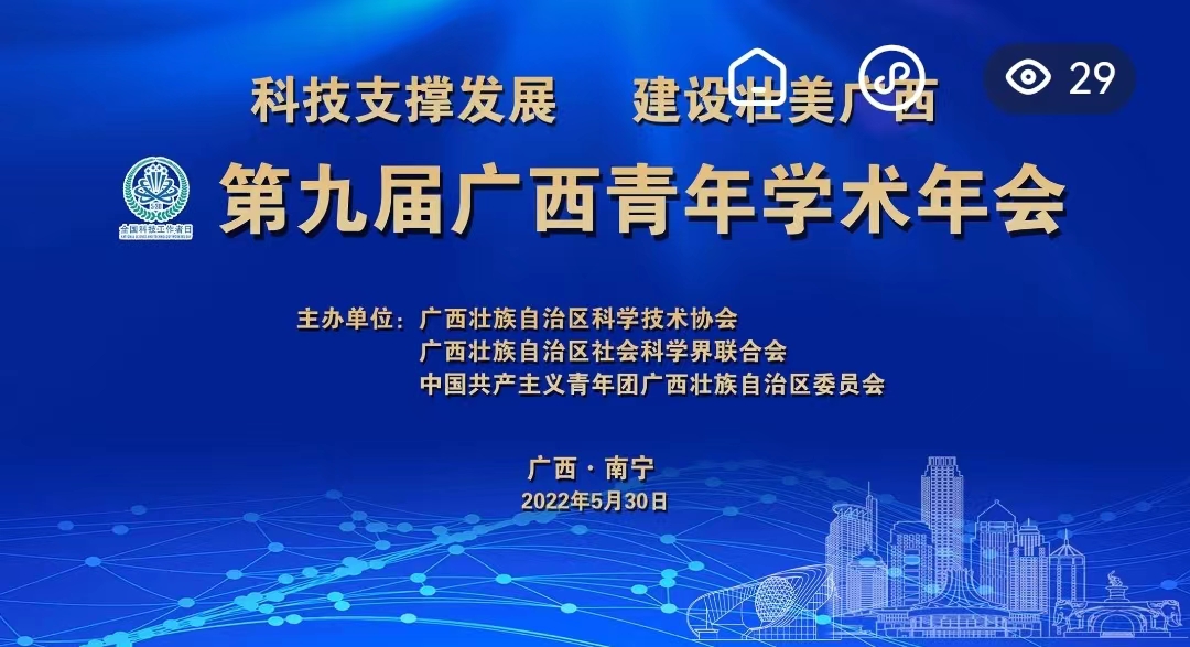 請結(jié)合本單位實際和疫情防控要求,組織科技工作者集中收看5月30日下午3:00-6:00在廣西科技館舉辦的第九屆廣西青年學術(shù)年會主會場活動線上直播。