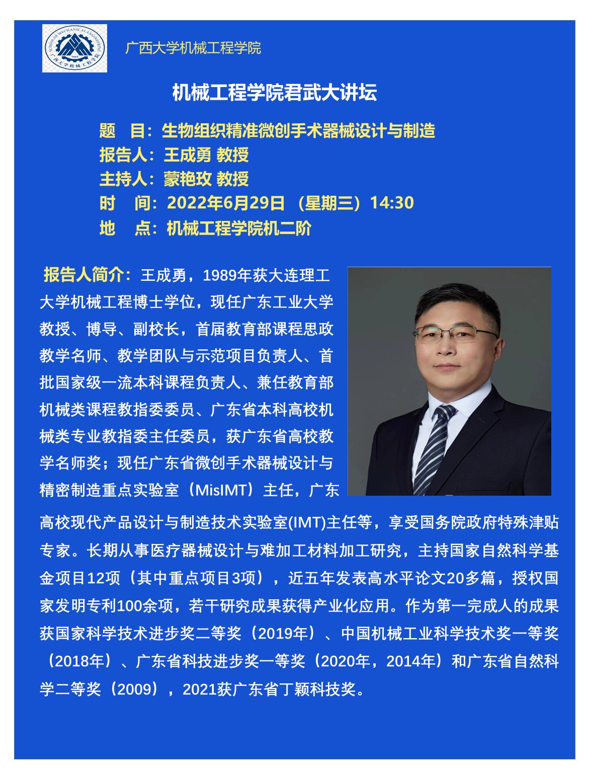主講人 王成勇 教授 地址 機械工程學院機二階