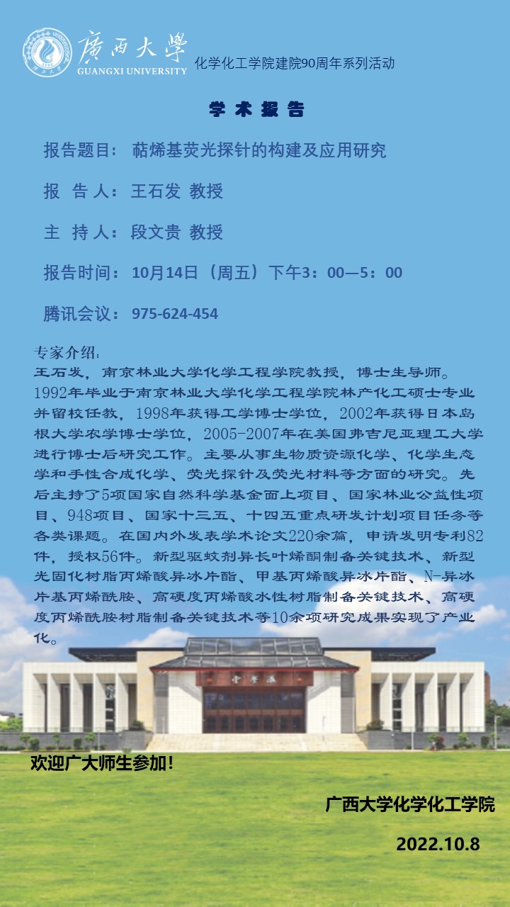 化學化工學院建院九十周年系列學術報告:萜烯基熒光探針的構建及應用研究