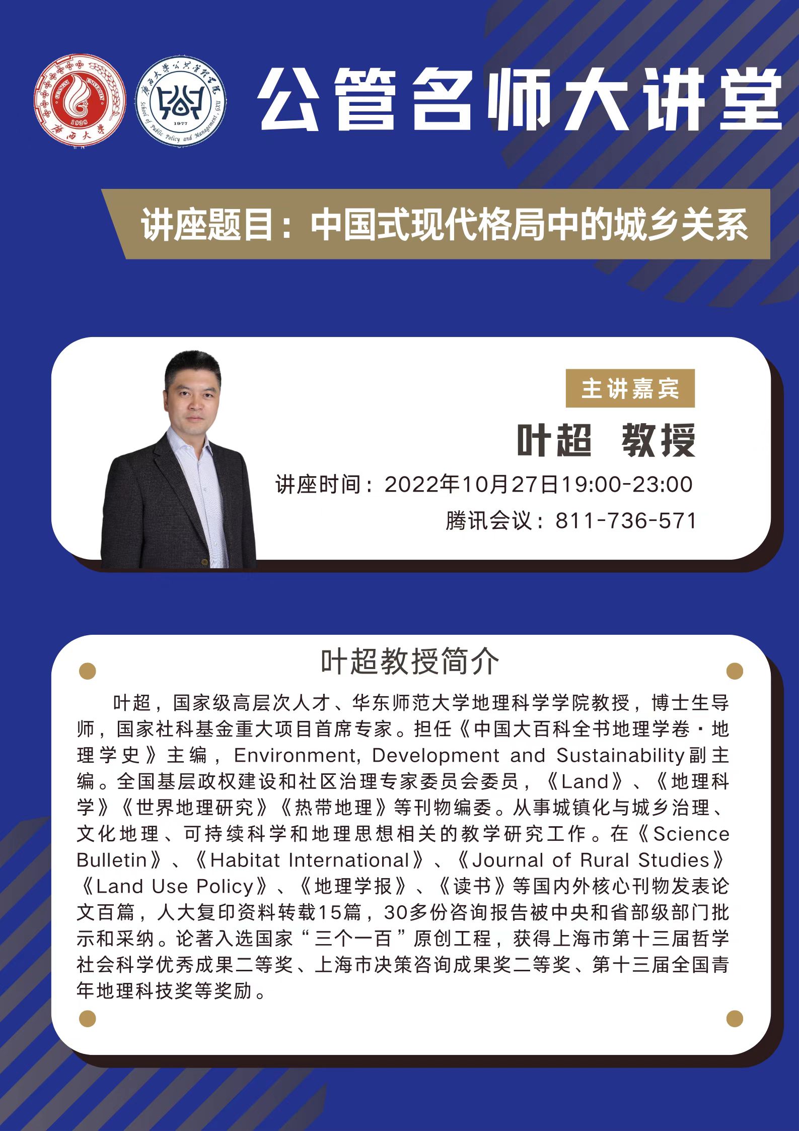 主講人 葉超 教授 地址 騰訊會議:811-736-571