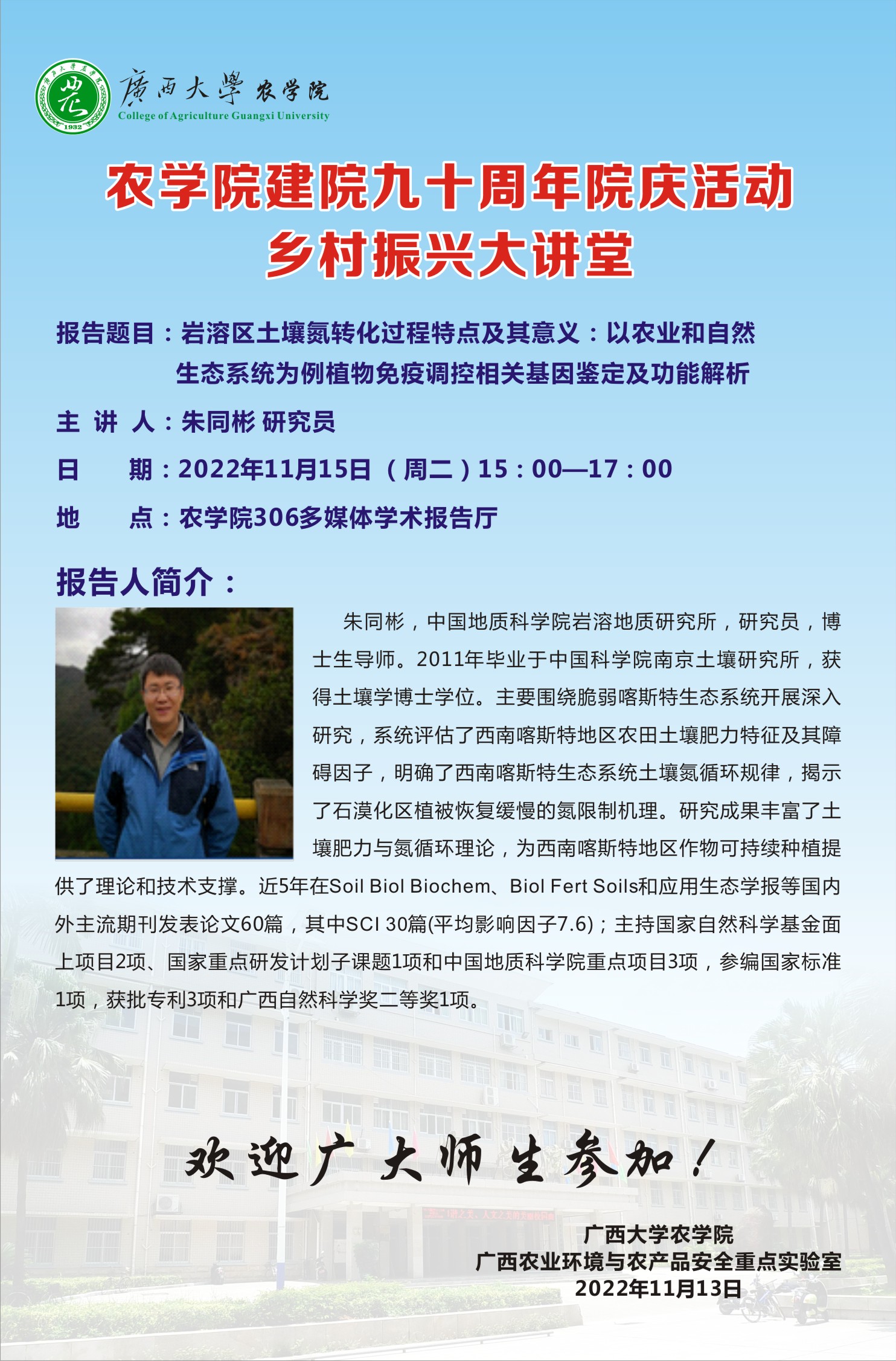 主講人 地址 農(nóng)學(xué)院306多媒體學(xué)術(shù)報告廳