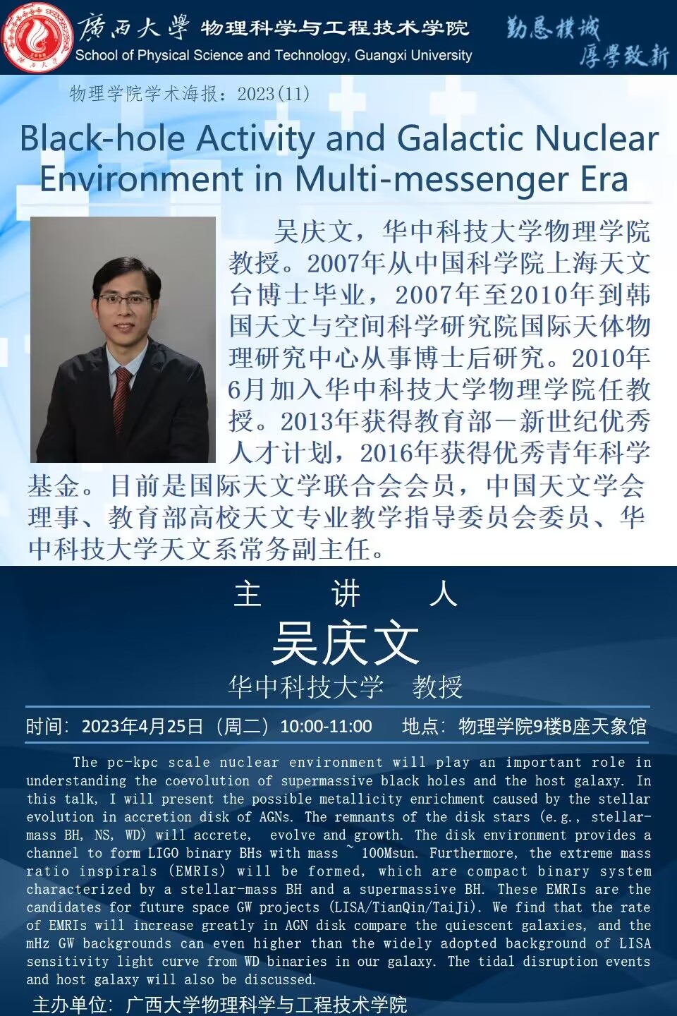 上一條:物理學院2023年學術報告系列之12:伽瑪暴的多波段輻射的觀測進展