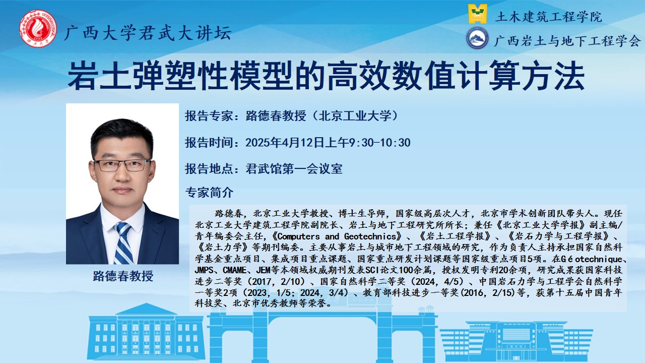 君武大講壇、土木建筑工程學院學術報告:巖土彈塑性模型的高效數值計算方法
