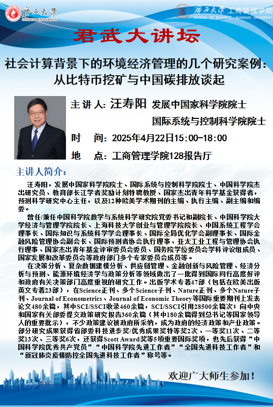 君武大講壇: 社會計算背景下的環境經濟管理的幾個研究案例—— 從比特幣挖礦與中國碳排放談起