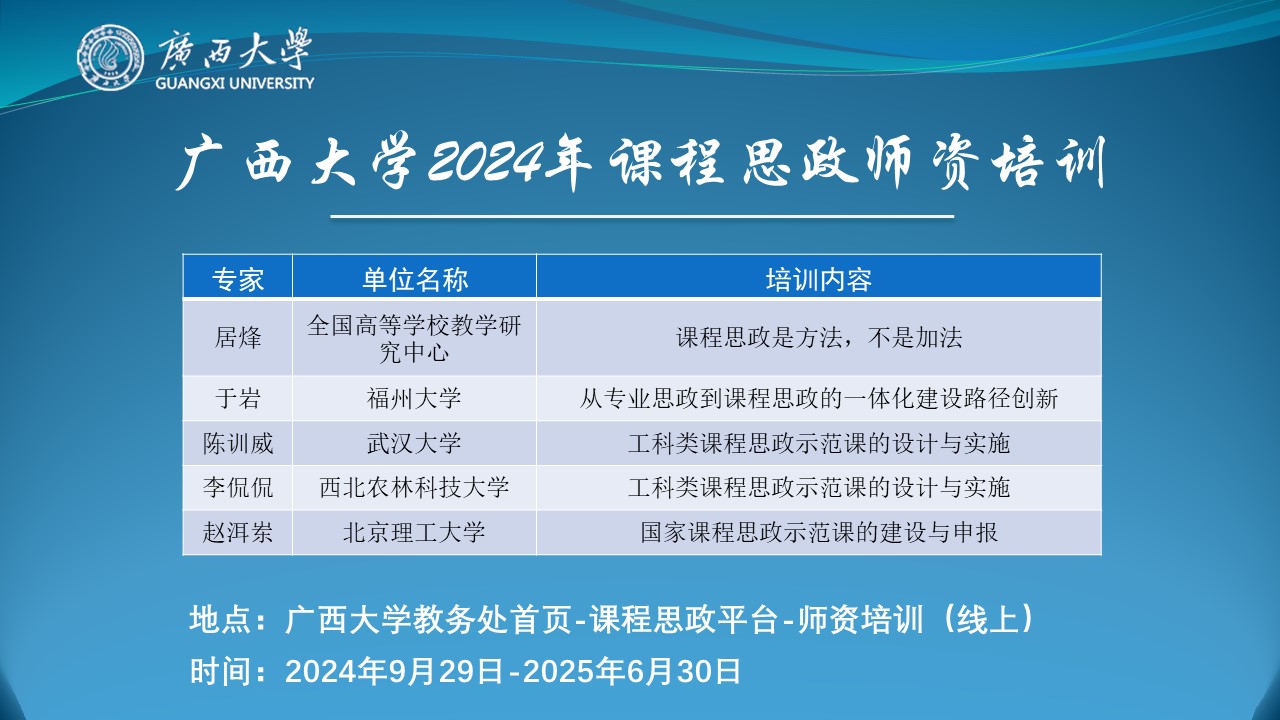 培訓(xùn)地點(diǎn) 廣西大學(xué)教務(wù)處首頁(yè)-課程思政平臺(tái)-師資培訓(xùn)(線上)